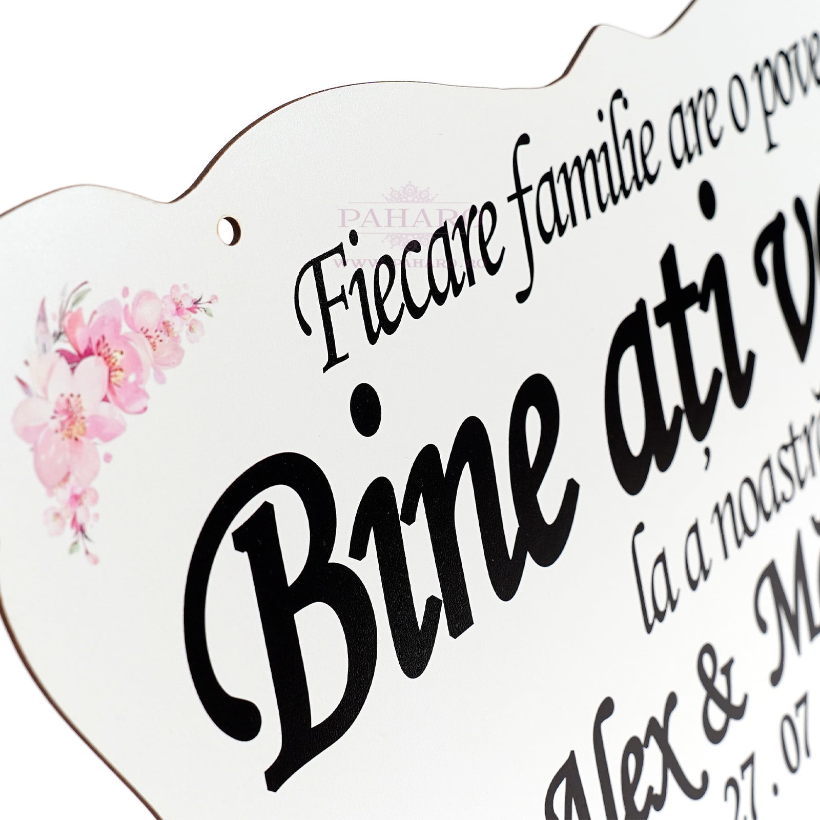 Acest panou decorativ de bun venit este perfect pentru a întâmpina invitații într-un mod elegant și prietenos, fie că este vorba de o nuntă, un botez sau un alt eveniment special. Realizat din materiale de calitate și decorat cu diverse modele florale, acest panou adaugă un plus de farmec și stil decorului.Cu mesajul cald „ Bine ați venit !” scris într-un design atrăgător, acest accesoriu devine un element memorabil al evenimentului vostru. Disponibil într-o varietate de culori și modele florale, poate fi adaptat oricărei tematici, oferind un impact vizual plăcut și armonios. Este atât un detaliu practic, cât și unul decorativ, care îi va face pe invitați să se simtă speciali încă de la începutul evenimentului.Un detaliu unic ce combină eleganța și funcționalitatea, acest panou este alegerea ideală pentru a crea o atmosferă primitoare și rafinată.