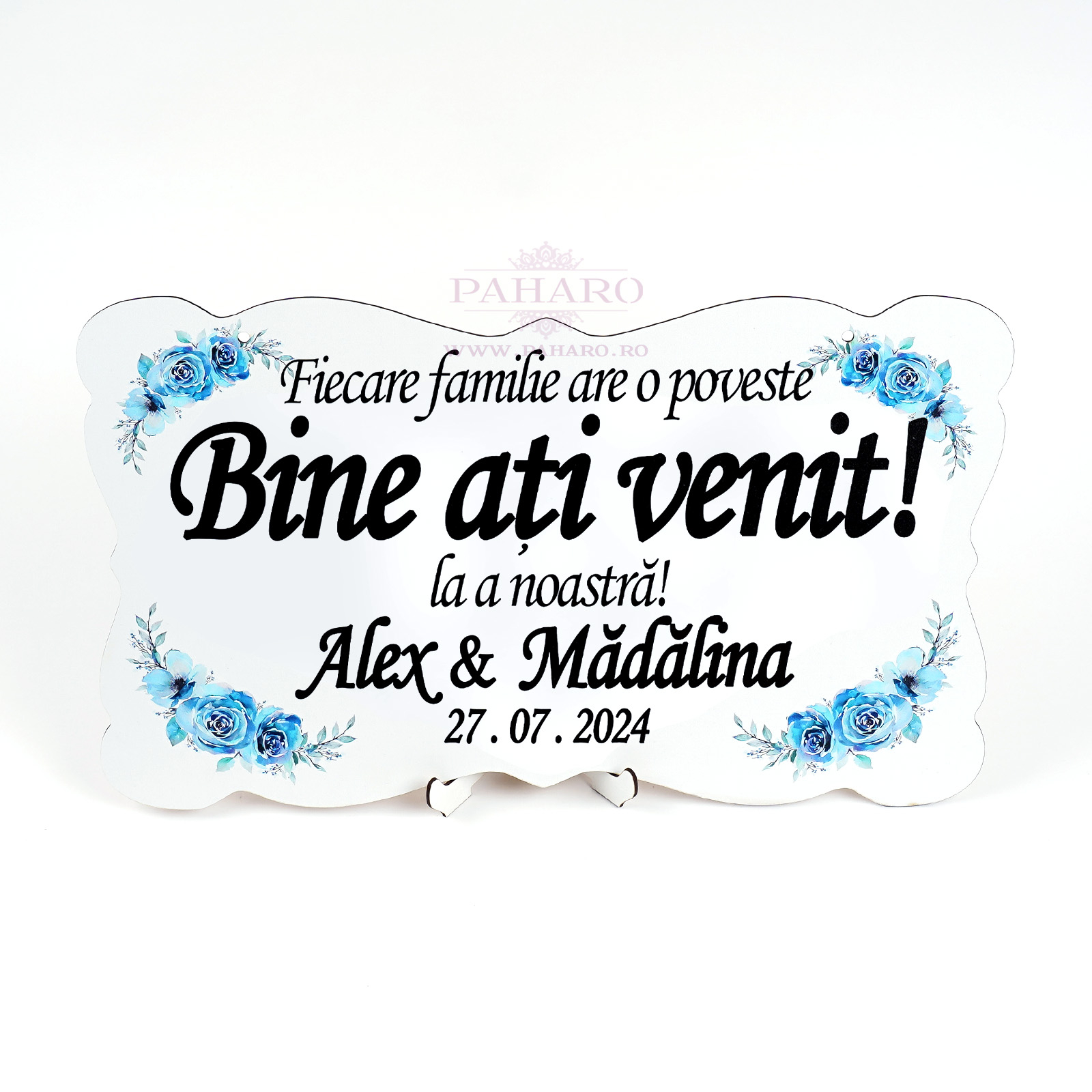 Acest panou decorativ de bun venit este perfect pentru a întâmpina invitații într-un mod elegant și prietenos, fie că este vorba de o nuntă, un botez sau un alt eveniment special. Realizat din materiale de calitate și decorat cu diverse modele florale, acest panou adaugă un plus de farmec și stil decorului.Cu mesajul cald „ Bine ați venit !” scris într-un design atrăgător, acest accesoriu devine un element memorabil al evenimentului vostru. Disponibil într-o varietate de culori și modele florale, poate fi adaptat oricărei tematici, oferind un impact vizual plăcut și armonios. Este atât un detaliu practic, cât și unul decorativ, care îi va face pe invitați să se simtă speciali încă de la începutul evenimentului.Un detaliu unic ce combină eleganța și funcționalitatea, acest panou este alegerea ideală pentru a crea o atmosferă primitoare și rafinată.