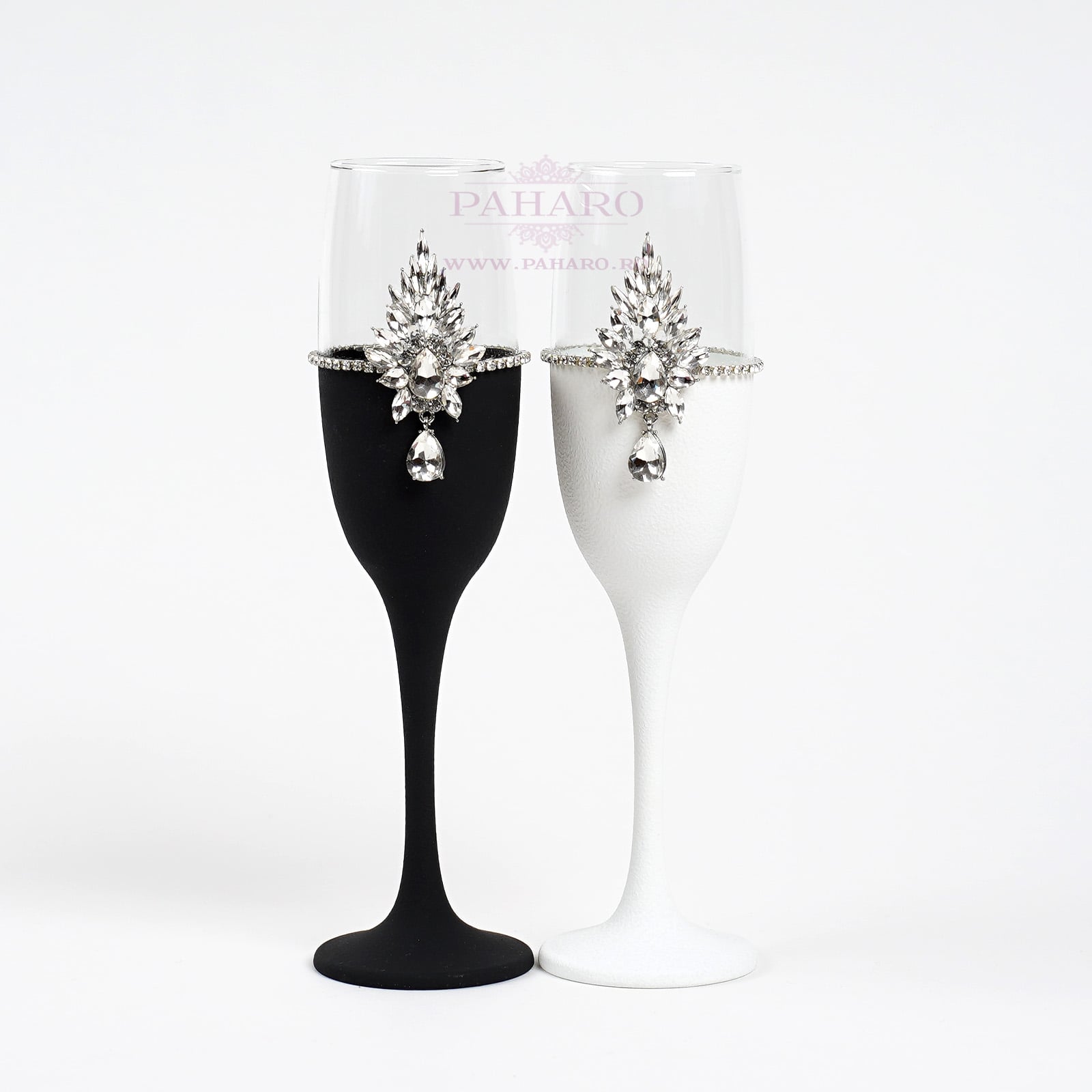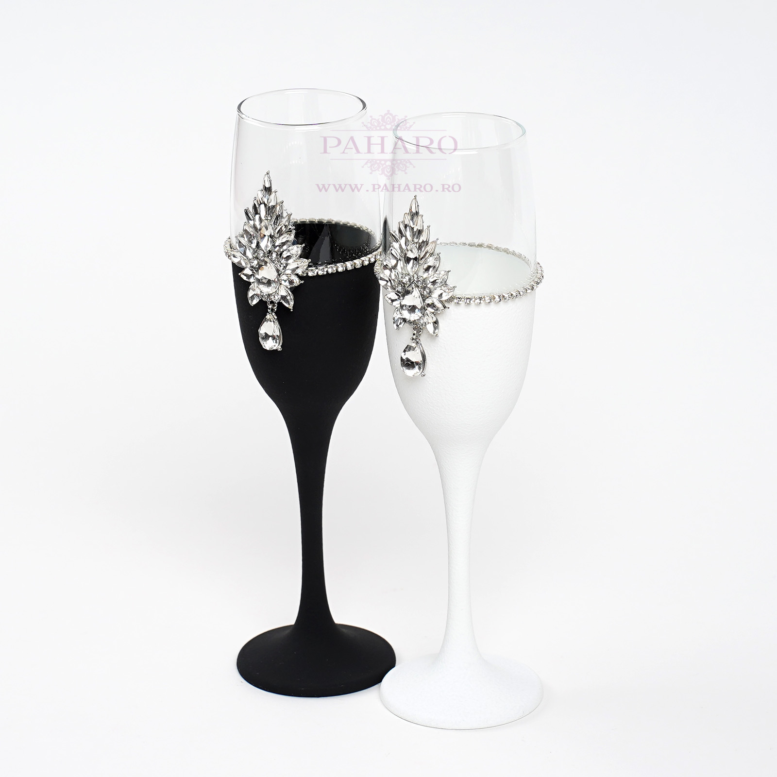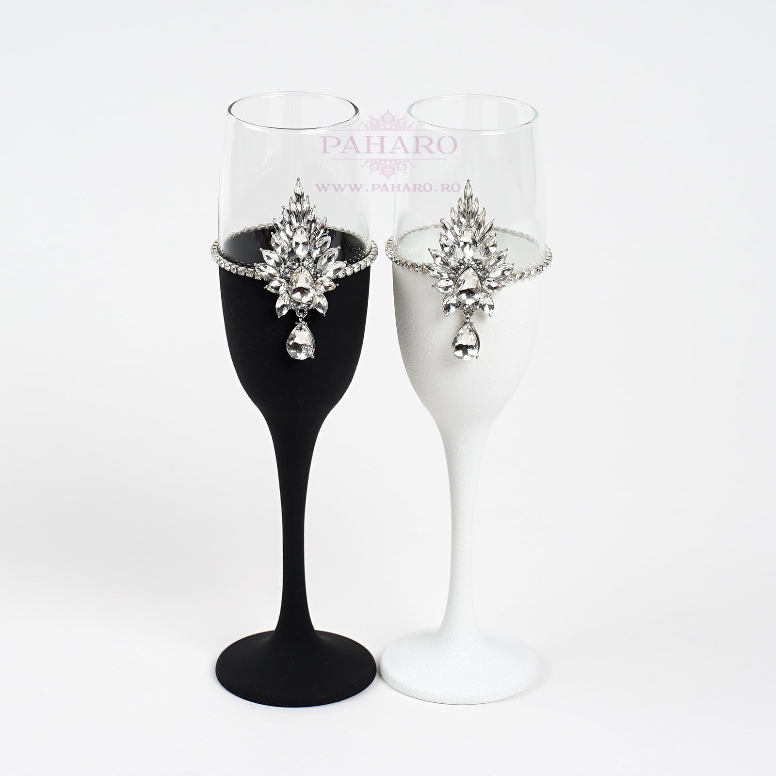 Paharul pentru domni: vopsit în negru mat, acest pahar este ornat cu un accesoriu deosebit realizat din cristale, oferind un efect strălucitor și completând aspectul de lux.