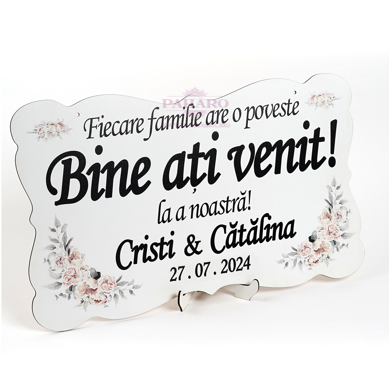 Acest panou decorativ de bun venit este perfect pentru a întâmpina invitații într-un mod elegant și prietenos, fie că este vorba de o nuntă, un botez sau un alt eveniment special. Realizat din materiale de calitate și decorat cu diverse modele florale, acest panou adaugă un plus de farmec și stil decorului.Cu mesajul cald „ Bine ați venit !” scris într-un design atrăgător, acest accesoriu devine un element memorabil al evenimentului vostru. Disponibil într-o varietate de culori și modele florale, poate fi adaptat oricărei tematici, oferind un impact vizual plăcut și armonios. Este atât un detaliu practic, cât și unul decorativ, care îi va face pe invitați să se simtă speciali încă de la începutul evenimentului.Un detaliu unic ce combină eleganța și funcționalitatea, acest panou este alegerea ideală pentru a crea o atmosferă primitoare și rafinată.